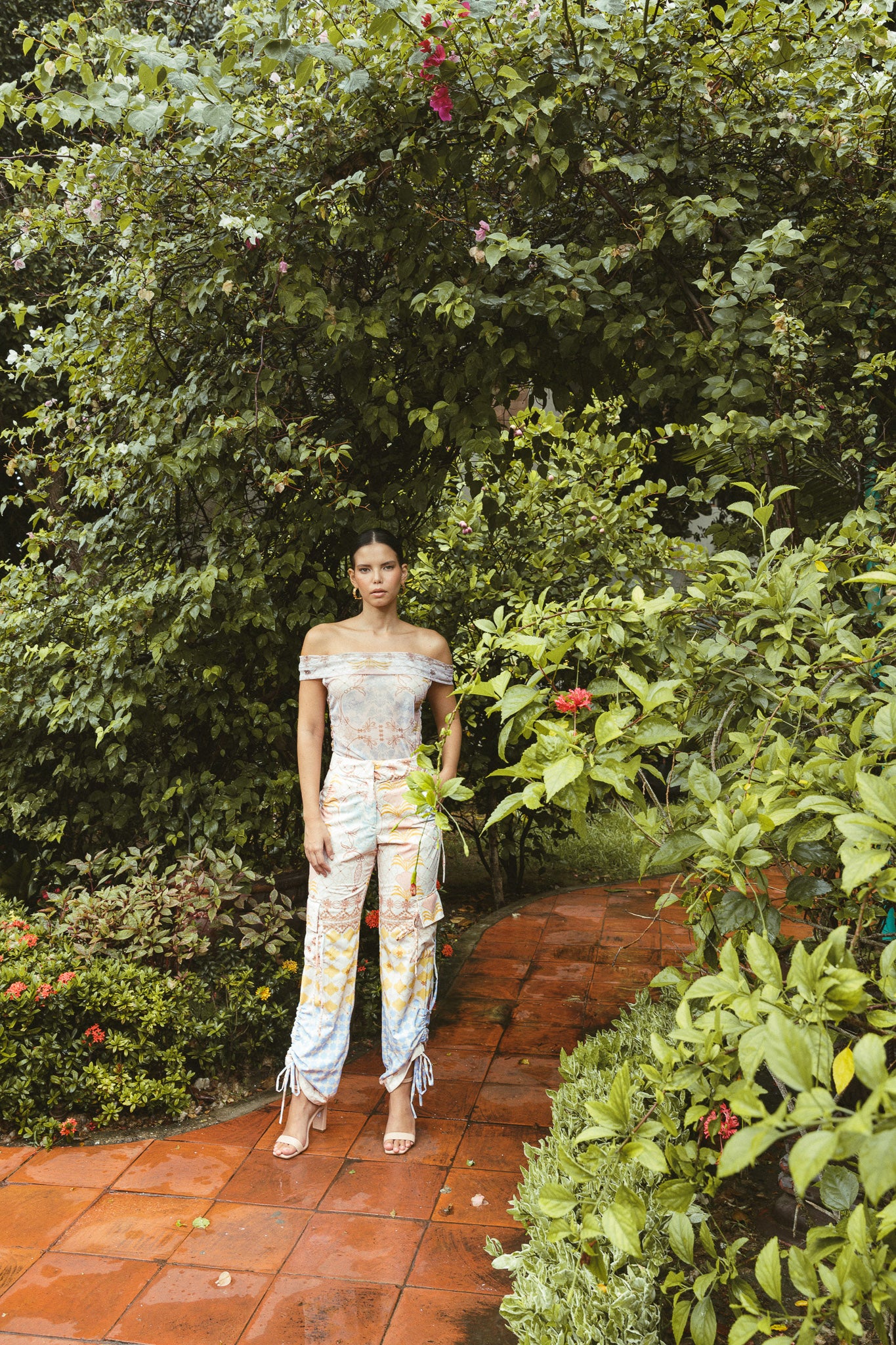 Pantalón de tiro alto con corte recto y ajuste cómodo con cierre de broche y cremallera en la parte delantera. Presenta bolsillos amplios con solapas en los laterales y un diseño con cintas ajustables en las piernas para un look versátil y moderno. Puedes combinarlo con nuestro Loto top y Zinnia Top.